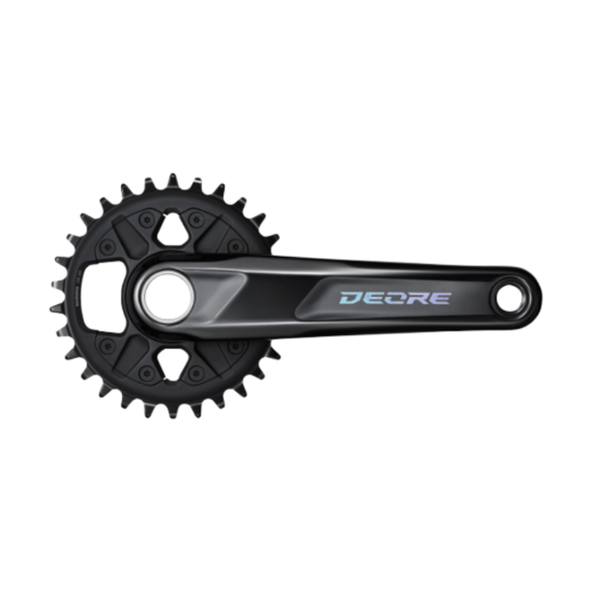The SHIMANO DEORE FC-M6100-1 crank features an entirely new construction, using direct mount chainrings, special gear tooth profile for improved chain retention, and a 172 mm Q-factor that is compatible with 142 mm or 148 mm O.L.D. frames.