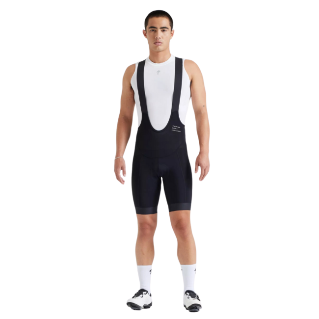 Elevate your ride to unmatched comfort for every rider with our Specialized Foundation Bib Shorts. The high-stretch fabric offers a low-compression fit, combining comfort and support seamlessly. Plush elastic suspenders, along with a lightweight back panel, ensure a soft feel against your skin while aiding temperature control. The elasticated cuff with silicone gripper provides a gentle, secure hold on your legs, preventing ride-up and distractions.